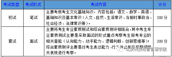 报名流程: 网上报名时间:3月22日8:00—3月26日18:00 网址:http://www.1985edu.com/ 报名现场确认时间:3月30日8:30—17:00 地址:北京市昌平区沙河镇顺沙路6号院北京科技经营管理学院招生办(北门) 初试时间及地点:4月5日上午9:30—11:30 初试地点:北京市昌平区沙河镇顺沙路6号院 复试时间及地点:4月5日下午13:00—17:00 复试地点:北京市昌平区顺沙路6号院 报名现场确认须携带的材料: 免初试(笔试)、免复试(面试)和免试入学相关条件如下: 免初试(笔试)或免复试(面试)条件(考生只允许选择一种免试方式,满足其中一条均可); 1、语数外三门任意二门会考成绩达到“B”以上(含“B”)其他一门达到“C”以上(含“C”)的考生; 2、获得国家职业资格证书或技能等级证书初级(含)以上者; 3、获得二级(含)以上运动员等级证书的考生; 4、区级(含)以上各类职业技能大赛获奖; 5、区级(含)以上学科竞赛获奖; 6、退役士兵; 注:免初试(笔试)或免复试(面试)的考生成绩统一折算为240分,计入初试成绩,如考生对成绩有更高要求可参加笔试考试,最终以考试成绩为准。 免试入学条件: 免试入学(满足其中一条均可) 1、语数外三门会考成绩均达到“B”以上(含“B”) 2、高中阶段获得市级(含)以上各类竞赛三等及以上奖项者 3、高中阶段获得市、区级三好、优干、优团 4、获得职业资格中级以上 5、高中阶段政府奖学金及其他市级以上智育奖学金者(含宏志奖学金) 6、退役士兵获个人或集体三等功及以上 7、服役期间获得优秀士兵称号的考生 考试测评内容: 综合成绩计算方式: 1、考生综合成绩=初试成绩x40%+复试成绩x60% 2、免试入学考生综合成绩计满分(300分) 录取原则及流程: 1、根据相关文件精神,对农村户口考生在综合成绩基础上加20分给予照顾。 2、按照考生综合成绩从高分到低分择优录取;在分数相同情况下可优先录取退役士兵考生和农村户口考生。 3、报考我院艺术类美术专业的考生录取时须美术统考合格。 4、我院体检要求按照《普通高等学校招生体检工作指导意见》及其补充规定严格执行。 5、根据市教育考试院规定被录取的自主招生考生不再参加今年高考,未被录取的考生可继续参加今年高考。 6、参加我院自主招生的新生录取流程为:学生本人申请报名,我院根据考生综合成绩,按照从高分到低分的顺序择优录取,确定预录取名单,经审核后上报北京市教育考试院审批确定录取名单并公示,同时发放录取通知书。 【联系方式】 联系电话: 400-888-1985 010-51731888 QQ:800180985