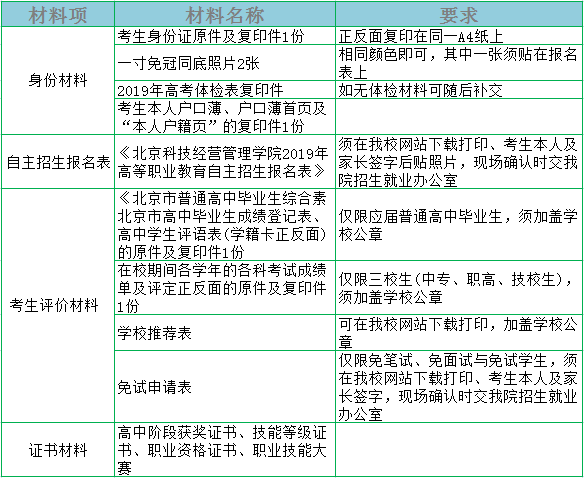 2019年凡是被北京科技经营管理学院录取的自主招生考生,均给予一次性奖学金8000元!可用于抵扣部分学费和住宿费! 在浏览器中输入北京科技经营管理学院官网网址:http://www.1985edu.com/ 免初试(笔试)或免复试(面试)条件(考生只允许选择一种免试方式,满足其中一条均可): 1、语数外三门任意二门会考成绩达到“B”以上(含“B”)其他一门达到“C”以上(含“C”)的考生; 2、获得国家职业资格证书或技能等级证书初级(含)以上者; 3、获得二级(含)以上运动员等级证书的考生; 4、区级(含)以上各类职业技能大赛获奖; 5、区级(含)以上学科竞赛获奖; 6、退役士兵; 注:免初试(笔试)或免复试(面试)的考生成绩统一折算为240分,计入初试成绩,如考生对成绩有更高要求可参加笔试考试,最终以考试成绩为准。 免试入学(满足其中一条均可): 1、语数外三门会考成绩均达到“B”以上(含“B”) 2、高中阶段获得市级(含)以上各类竞赛三等及以上奖项者 3、高中阶段获得市、区级三好、优干、优团 4、获得职业资格中级以上 5、高中阶段政府奖学金及其他市级以上智育奖学金者(含宏志奖学金) 6、退役士兵获个人或集体三等功及以上 7、服役期间获得优秀士兵称号的考生