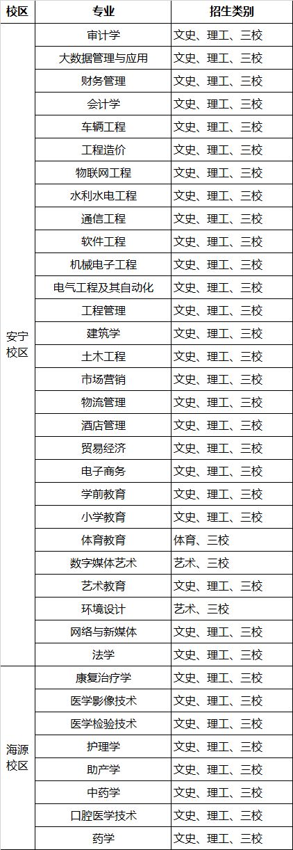 专科 | 护理 | 药学 | 医学检验技术 | 医学美容技术 |