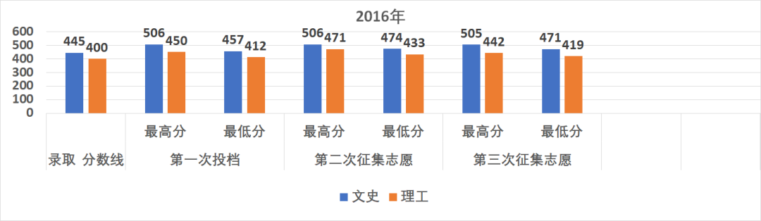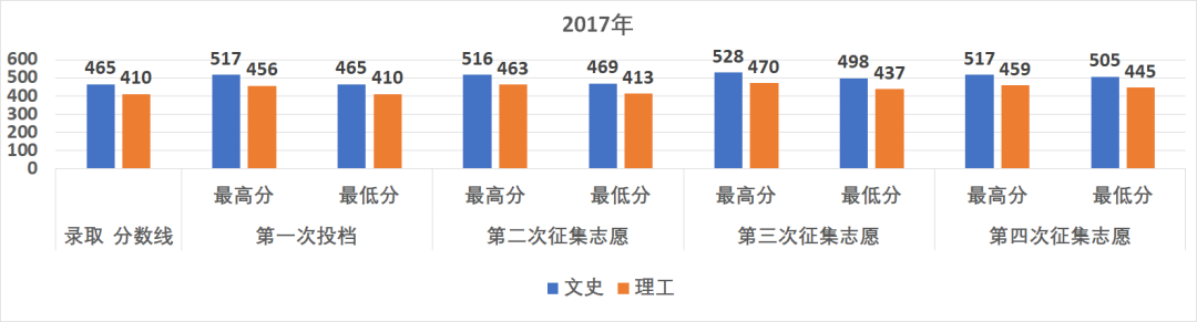 2、近几年我校第一次投档分数达到本科最低控制线即可录取,在征集志愿时计划越来越少、投档分数则越来越高(见下表),因此建议考生在二本A志愿填报我校,录取几率更大。