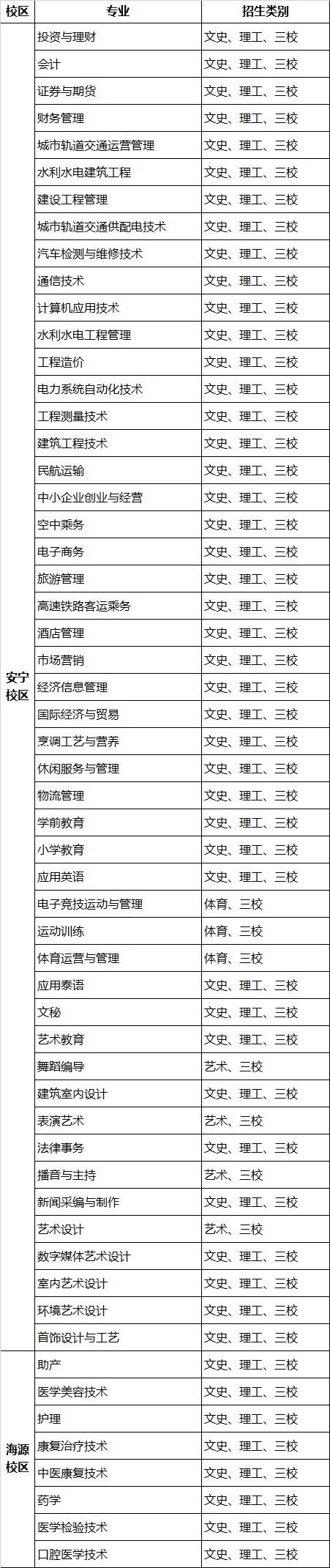 专科 | 空中 乘务 | 国际经济与贸易 | 经济信息管理 | 市场 营销 |