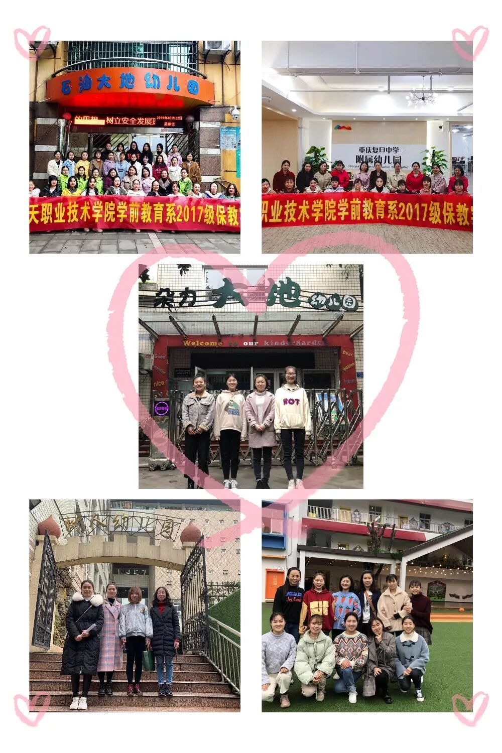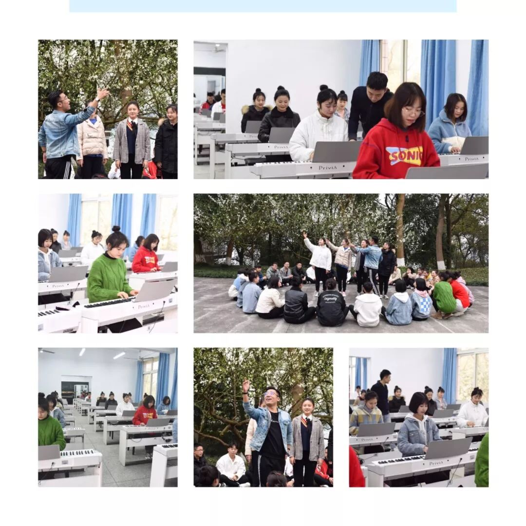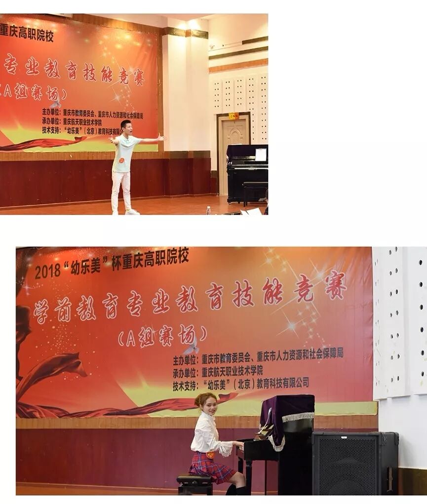 我们是:学前教育系的学子 我们在生动有趣的课堂上积累知识; (图为:幼儿教师舞蹈技能课程场景) (图为:幼儿教师音乐技能课程场景) (图为:奥尔夫音乐教育课程场景) (图为:幼儿教师美术技能课程场景以及部分学生作品) (图为:幼儿园教育活动设计与指导课程的场景) 我们在丰富多彩的团学活动中 练就本领; 我们在广阔无比的舞台上绽放青春; (图为:我系学生邹玥、马仙凤参加2018年全国职业院校技能大赛高职组“学前教育专业教育技能”荣获一等奖) (图为:我系学生在2017年、2018年两年荣获重庆高职院校学前教育专业教育技能竞赛一等奖) 我们是:幼教追梦人 我们坚定地传承师德, 内外兼修; 我们坚守着童年净土, 呵护备至; 我们坚持教育的梦想, 不忘初心! (图为:我系学生在重庆市区部分幼儿园见习、实习)(图为:系团总支、学生会开展的各项团学活动)