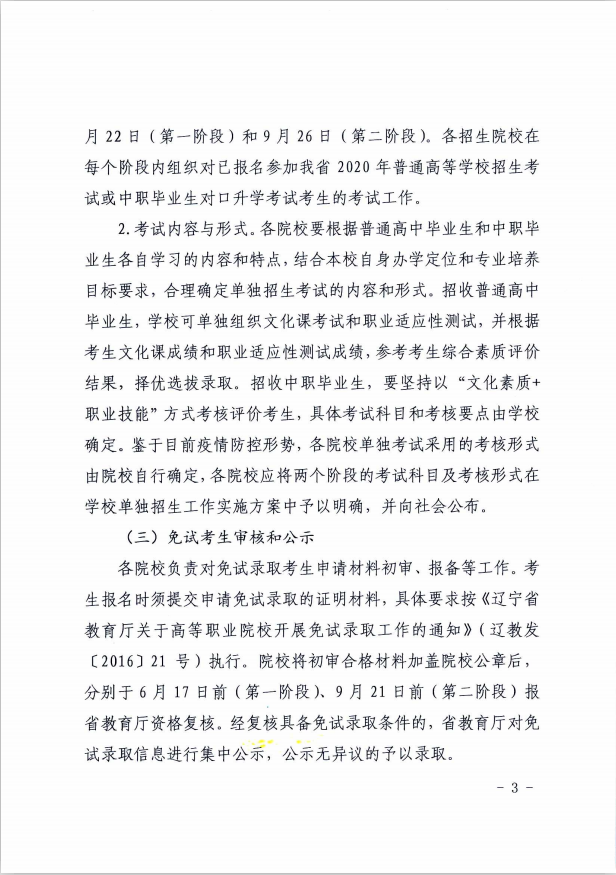 辽宁省2020年高等职业院校单招考试时间安排