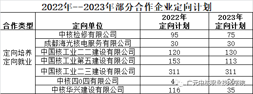 学校是中国核工业技能人才定点培养单位,与中核集团“协同育人、订单培养、定向就业”,学生毕业后定向就业到中核集团。