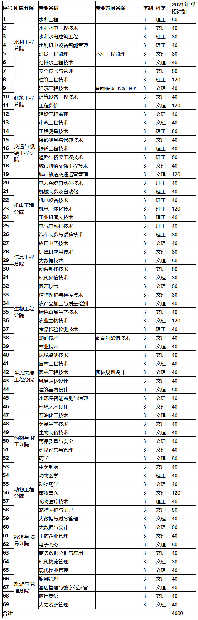 宝鸡三和职业学院2025年高职院校分类考试招生专业计划