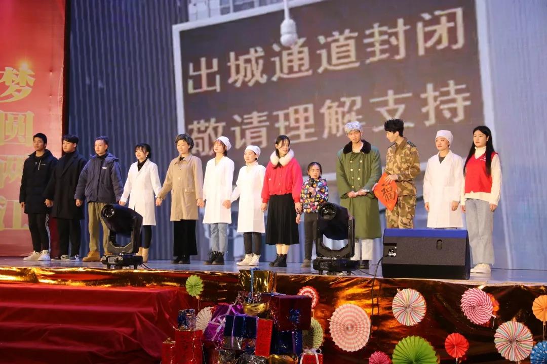 晚会现场,学校各党支部、团委和四川航天天盛物业公司带来的13个节目轮番登台上演,畅想学校“1226”战略的朗诵《凝心聚力 唱响1226》、展现抗击疫情的话剧《逆行者》、歌颂新时代的舞台剧《我用青春献祖国》、回顾学校发展历程的歌舞剧《去报到》等一个个精彩节目让观众目不暇接的同时,也让现场人心振奋,掌声不断。