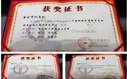 我院在2018年全国职业院校学前教育专业技能大赛荣获团队一等奖的优异成绩。