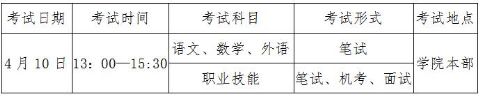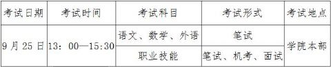 3.单招考生(高中)分“文化课考试+职业适应性测试”两部分;文化课考核方式为笔试,考试科目为语文、数学、英语,各科满分均为100分;职业适应性测试为笔试,满分为100分。总分400分。汽车技术服务与营销、旅游管理、国际邮轮乘务管理、城市轨道交通运营管理专业附加现场面试环节,满分100分。总分500分。职业适应性测试低于60分的考生,将取消录取资格。