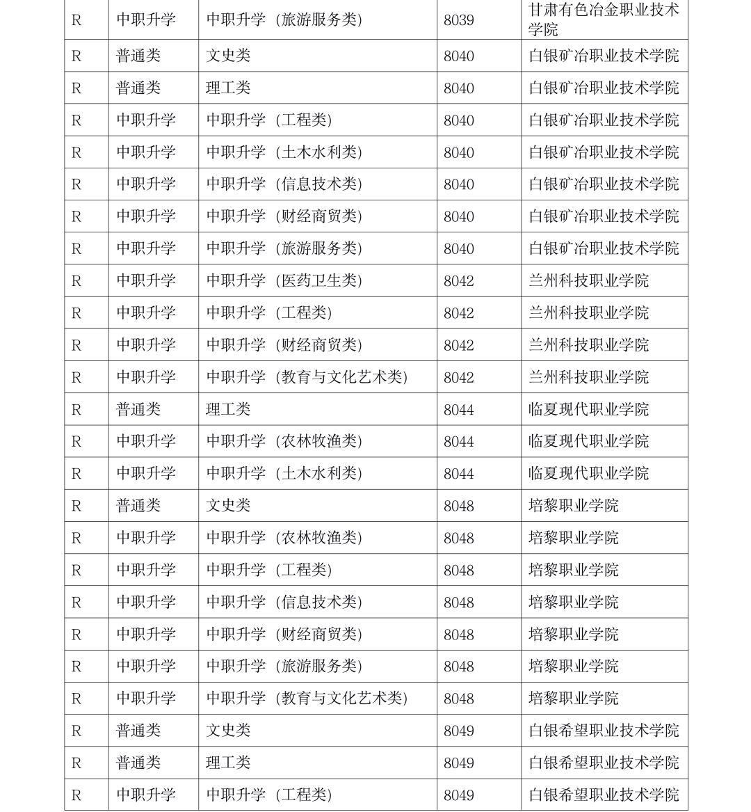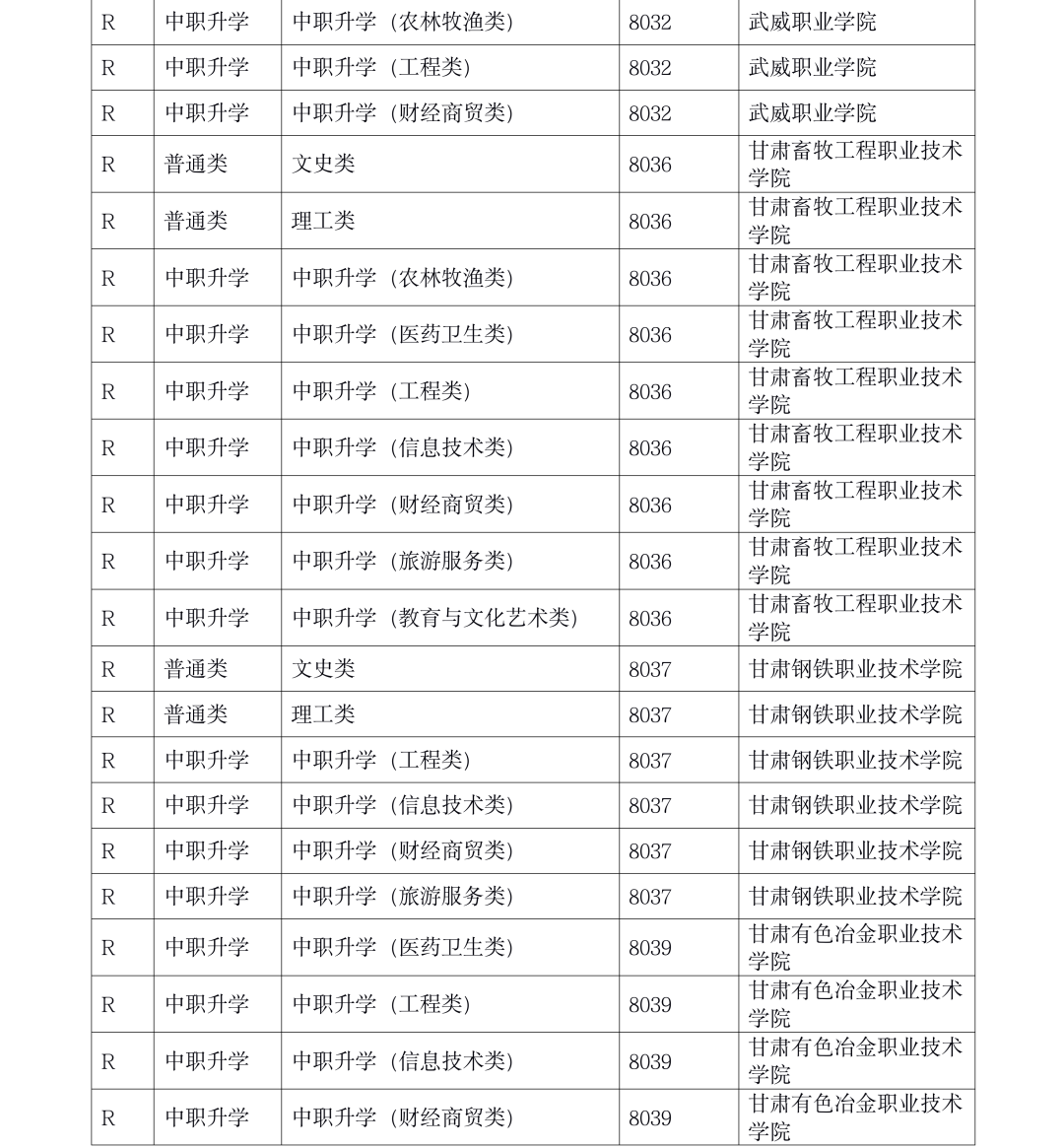 4.2021年甘肃省普通高校招生R段第一次投档及征集志愿投档未满额院校名单