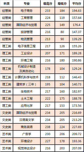 汉语言文学、日语、商务英语、工程管理、建筑学、土木工程、电子商务、国际经济与贸易、工商管理、会计学、旅游管理、物流管理、广告学、环境设计、视觉传达设计专业