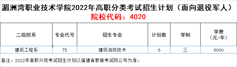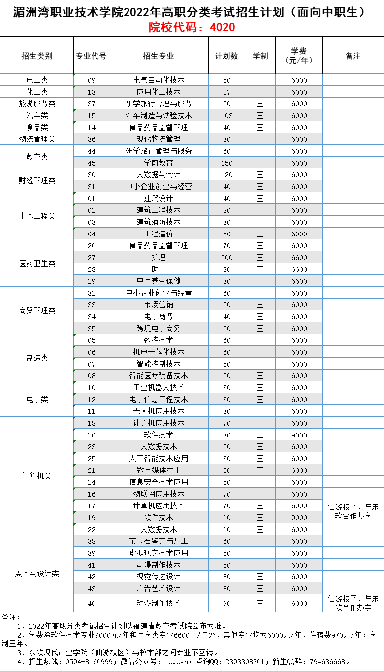 湄洲湾职业技术学院2022年高职分类招考招生专业