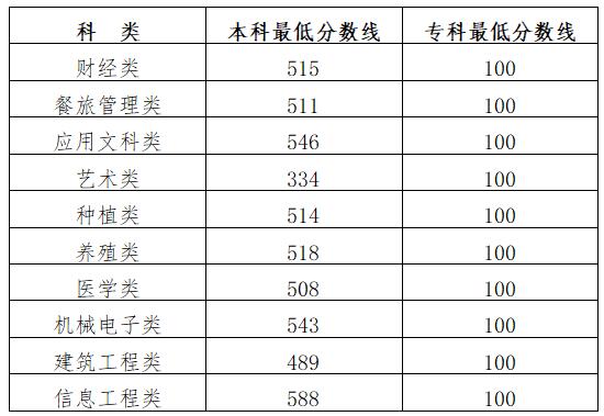 (2)2022年吉林省普通高校对口招生统一考试各科类、批次录取最低控制分数线见下表: