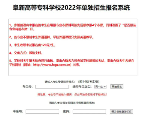 阜新高等专科学校2022年单招考试报名须知