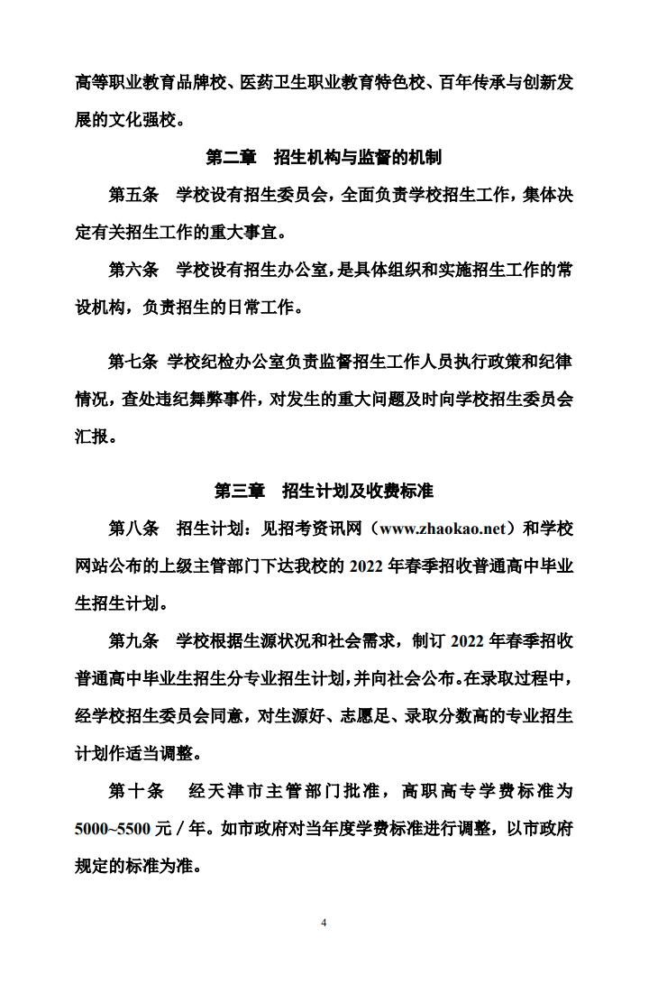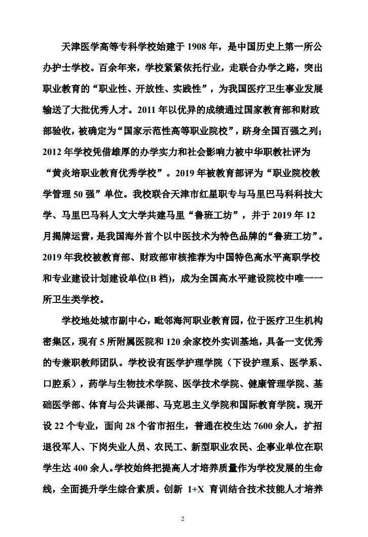 天津医学高等专科学校2022年春季招收普通高中毕业生招生章程