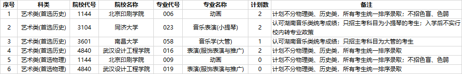 湖南省2022年普通高校招生本科提前批(艺术类非平行组)征集志愿国家任务计划(点击下载)