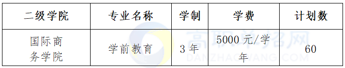 实操类招生计划共计60人,招生专业为学前教育,文、理、三校兼收。考试科目:文化素质考试+职业技能测试。