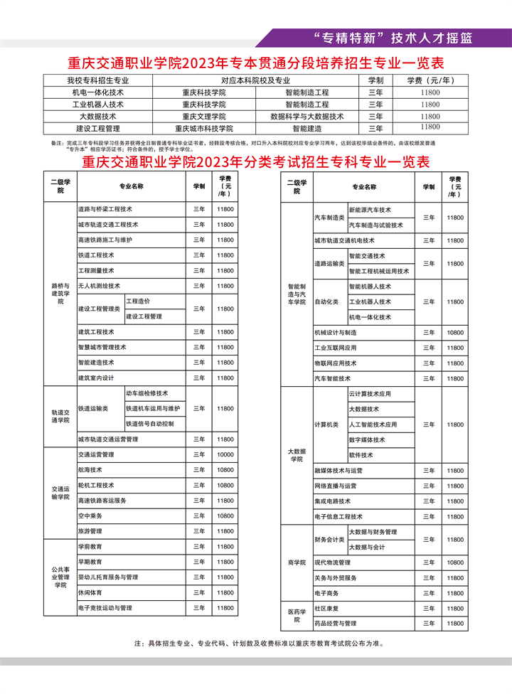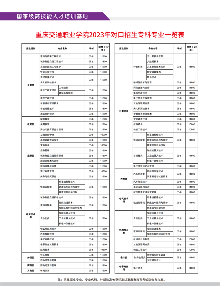 2023年重庆交通职业学院高职分类考试招生专业