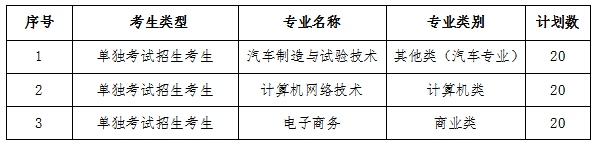 (二)面向单独考试招生考生计划