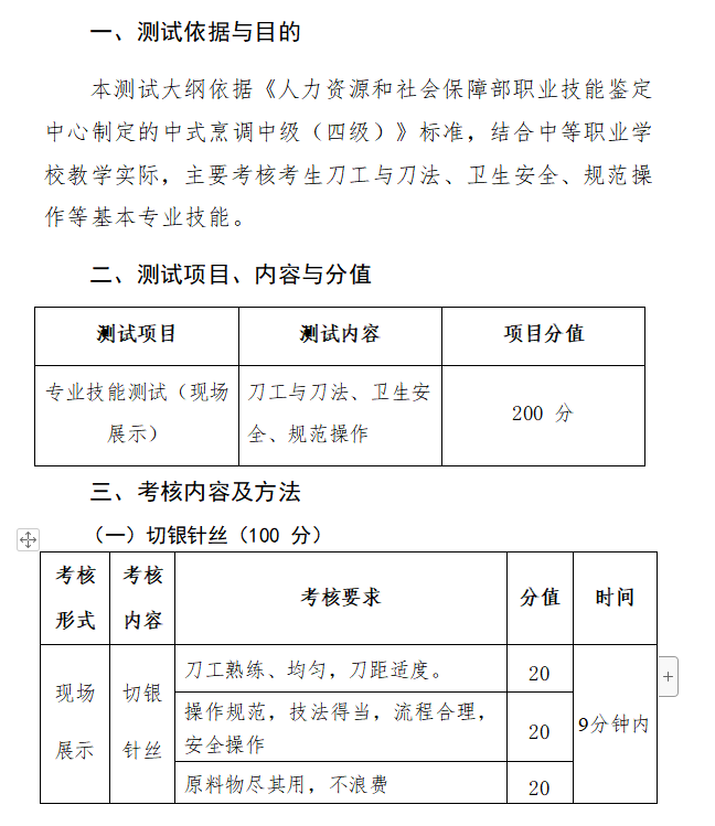 2023年烹饪工艺与营养专业技能测试大纲