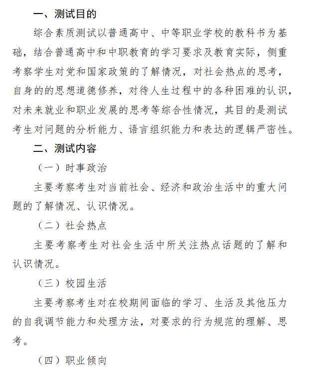 2023年单招综合素质测试考试大纲