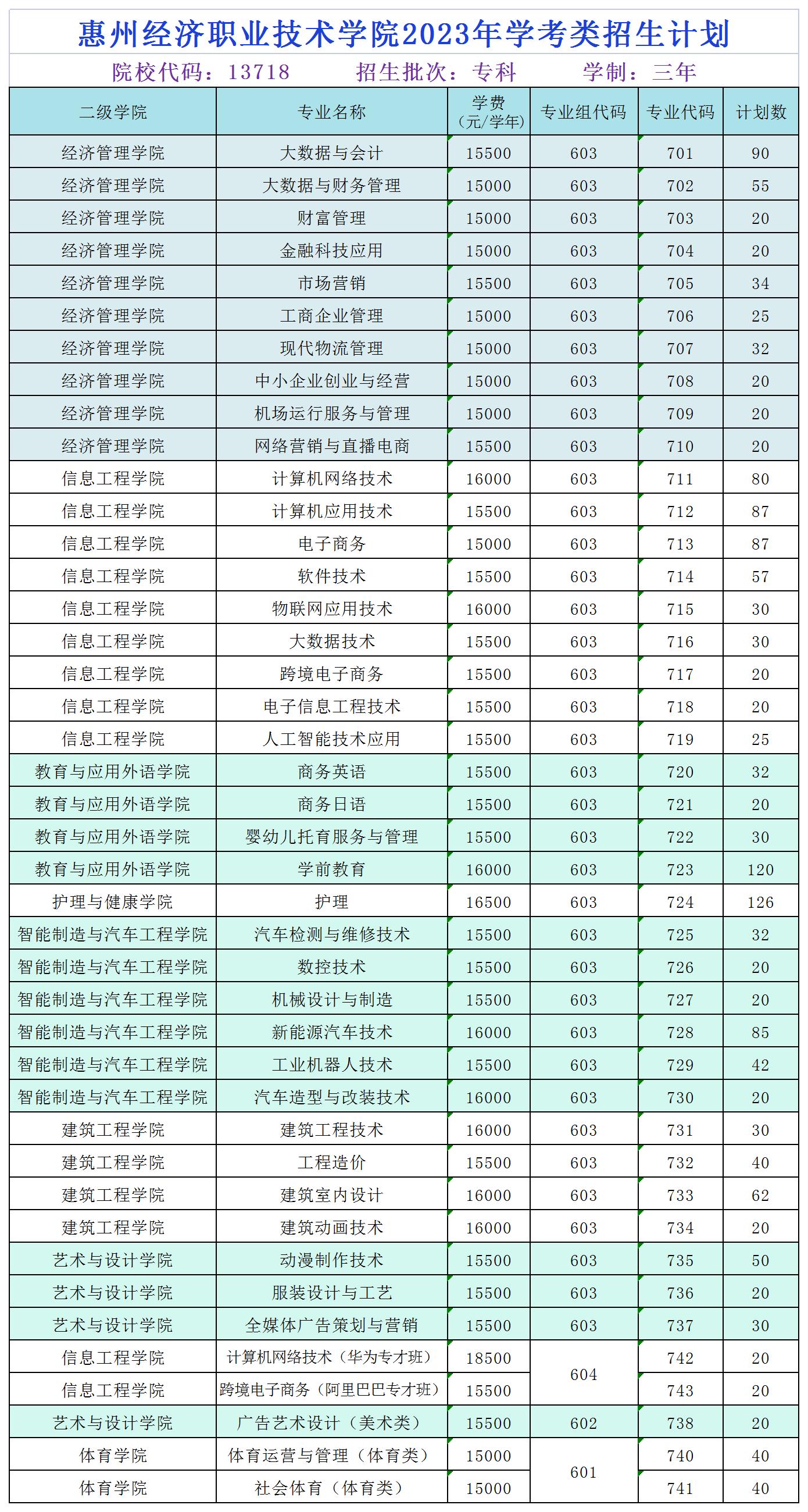 惠州经济职业技术学院2023年春季高考招生计划