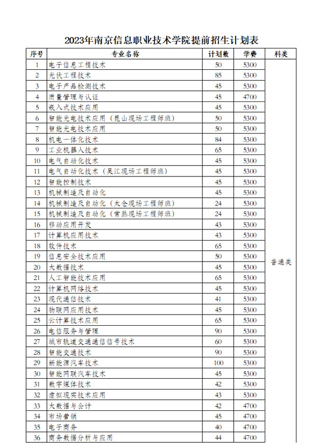 2023年南京信息职业技术学院提前招生计划