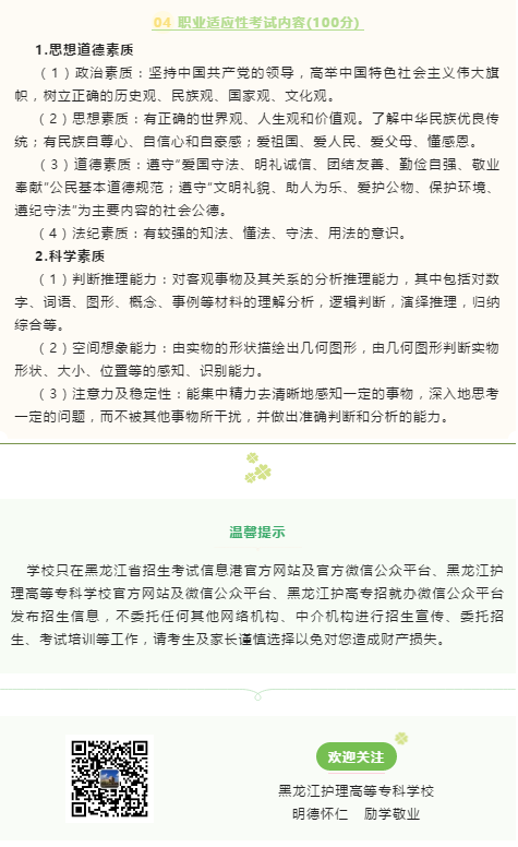 黑龙江职业学院2025年单独招生职业适应性测试样题 黑龙江职业学院2025年单独招生职业适应性测试样题