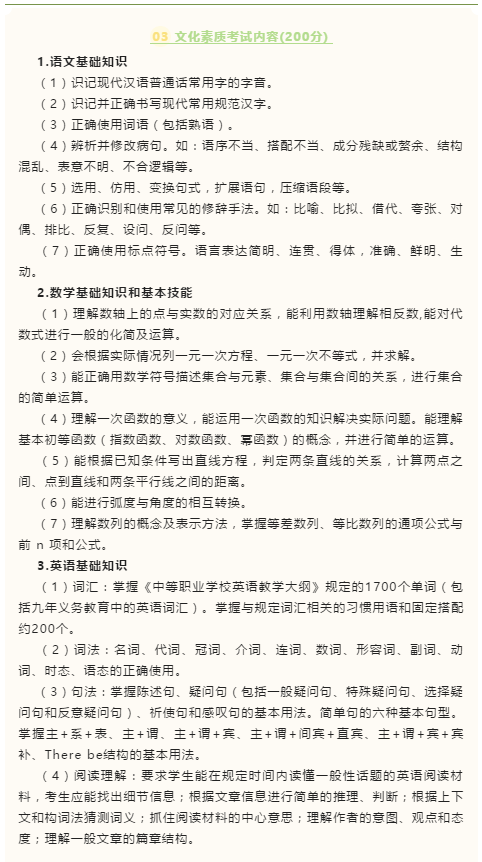 黑龙江职业学院2025年单独招生文化、职业适应性测试样题考试大纲