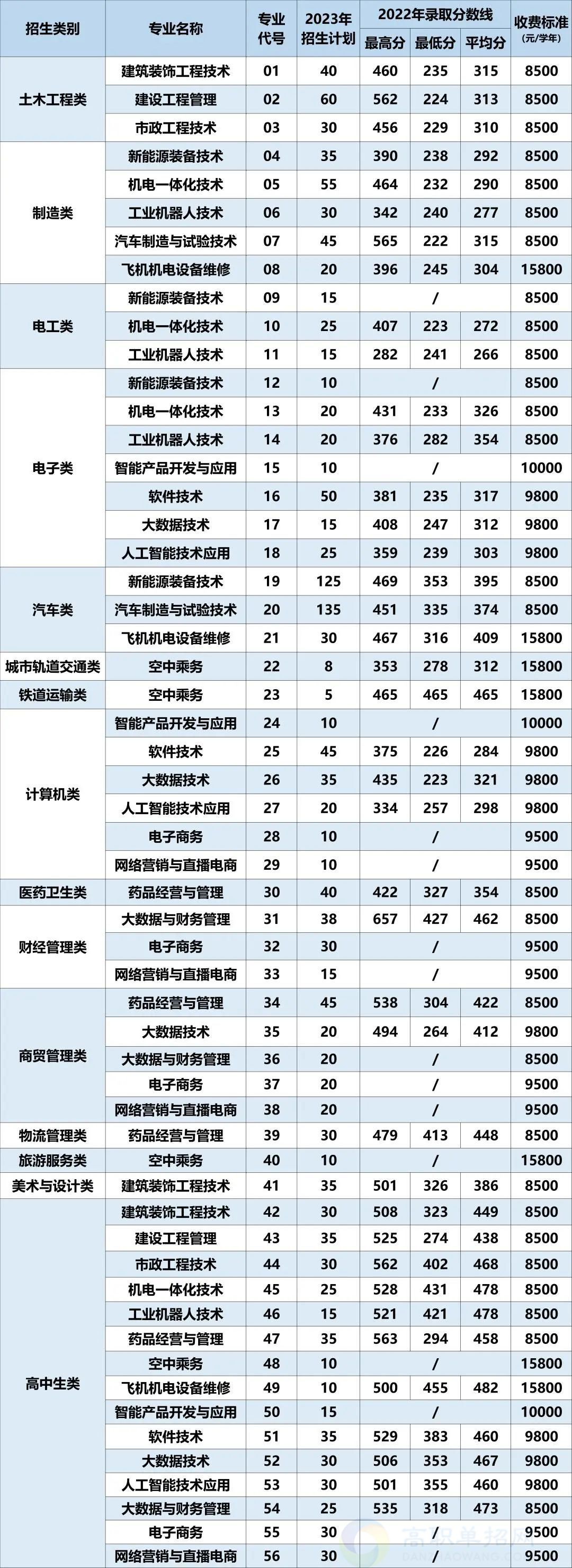 泉州工程职业技术学院2023年高职分类招生专业计划及往年录取分数线
