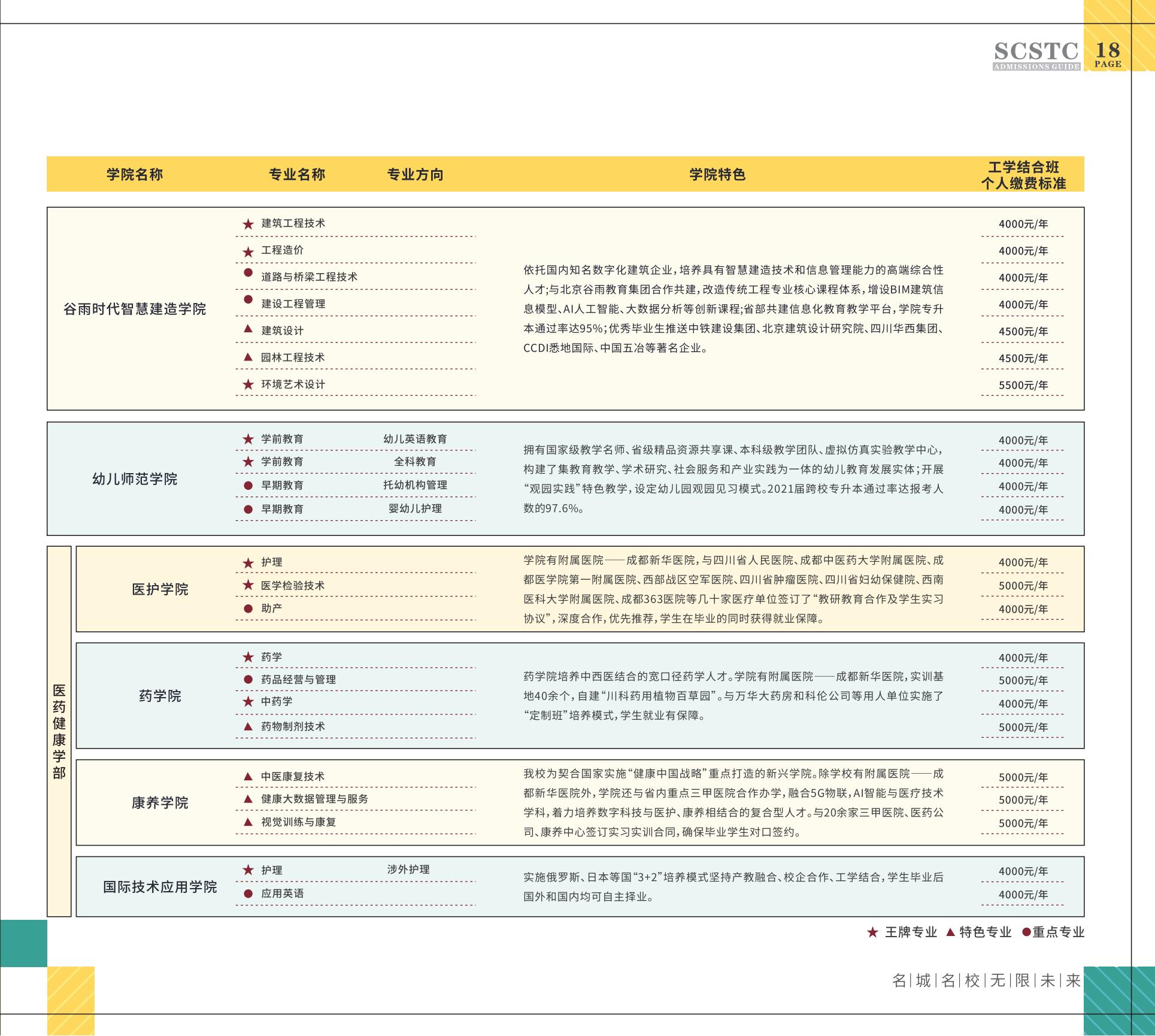 四川科技职业学院单招专业有:计算机网络技术、软件技术、电子信息工程技术、通信技术、计算机应用技术、物联网应用技术、新能源汽车技术、汽车运用与维修技术、城市轨道交通运营管理、数控技术、等专业,以下是四川科技职业学院单招专业列表详情。