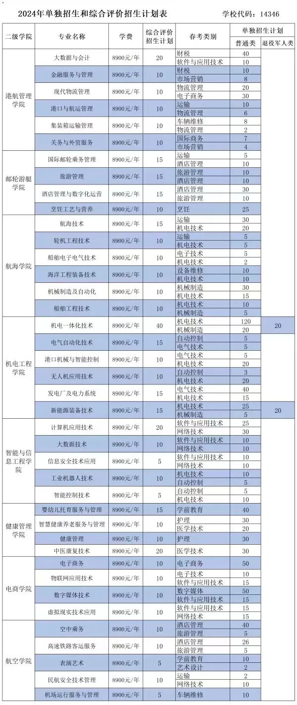 山东海事职业学院2024年单招综评招生简章