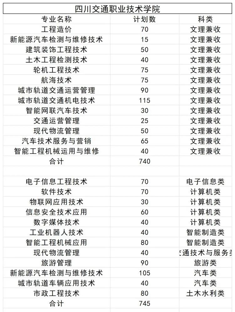 四川交通职业技术学院2024年单招招生专业计划