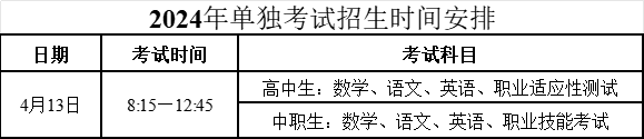 职业适应性测试考试大纲于报名开始时在学校单独考试招生报名系统中公布。