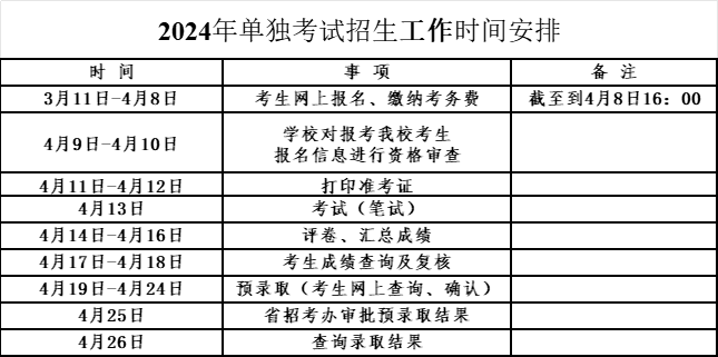 预录取结果查询时间:4月19日—4月24日。考生可通过单独考试招生报名系统查询。