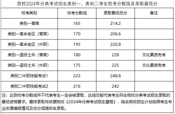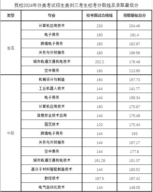 芜湖职业技术学院2024年分类考试招生校考合格线及录取最低分