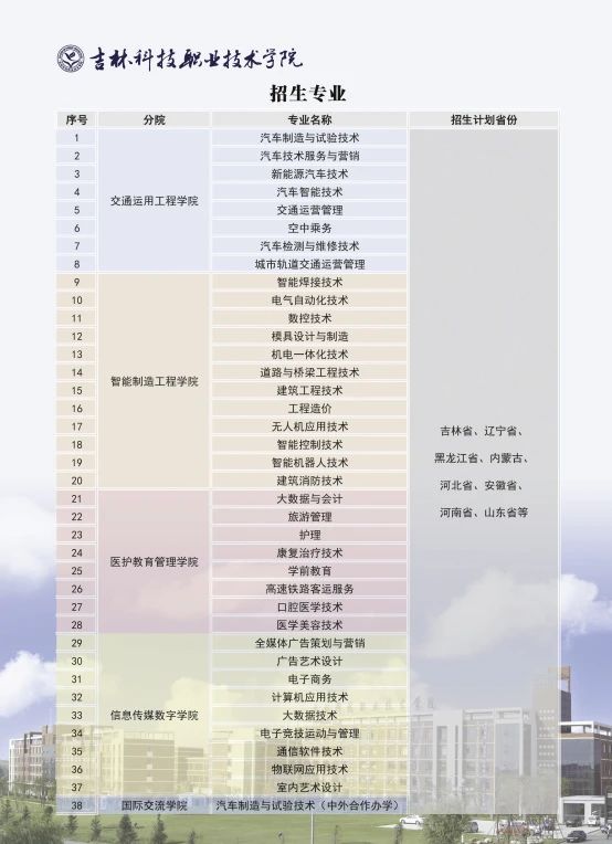 2024年吉林科技职业技术学院高职单招专业