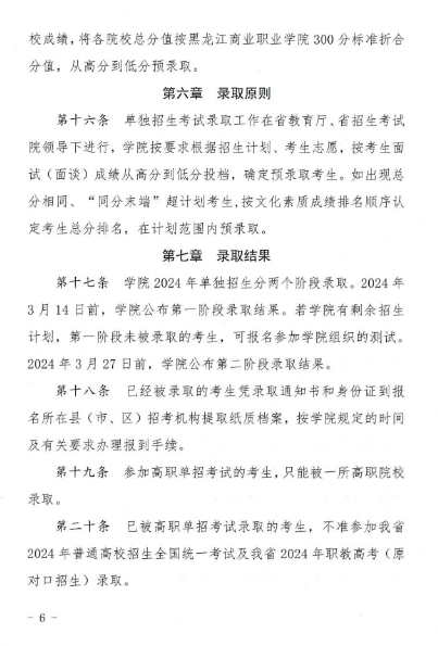 2024年黑龙江商业职业学院单独招生考试章程