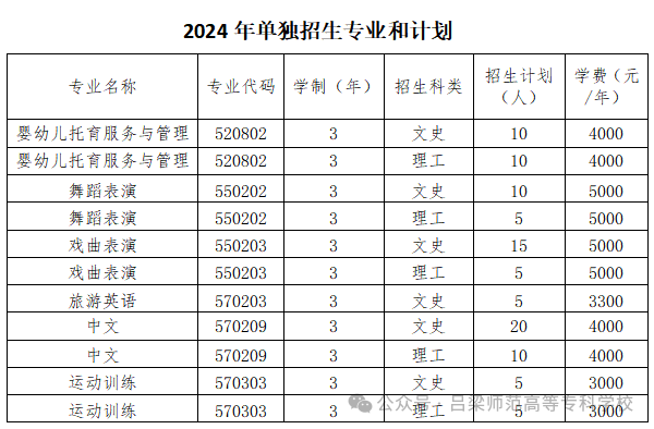 吕梁师范高等专科学校2024年单独招生简章