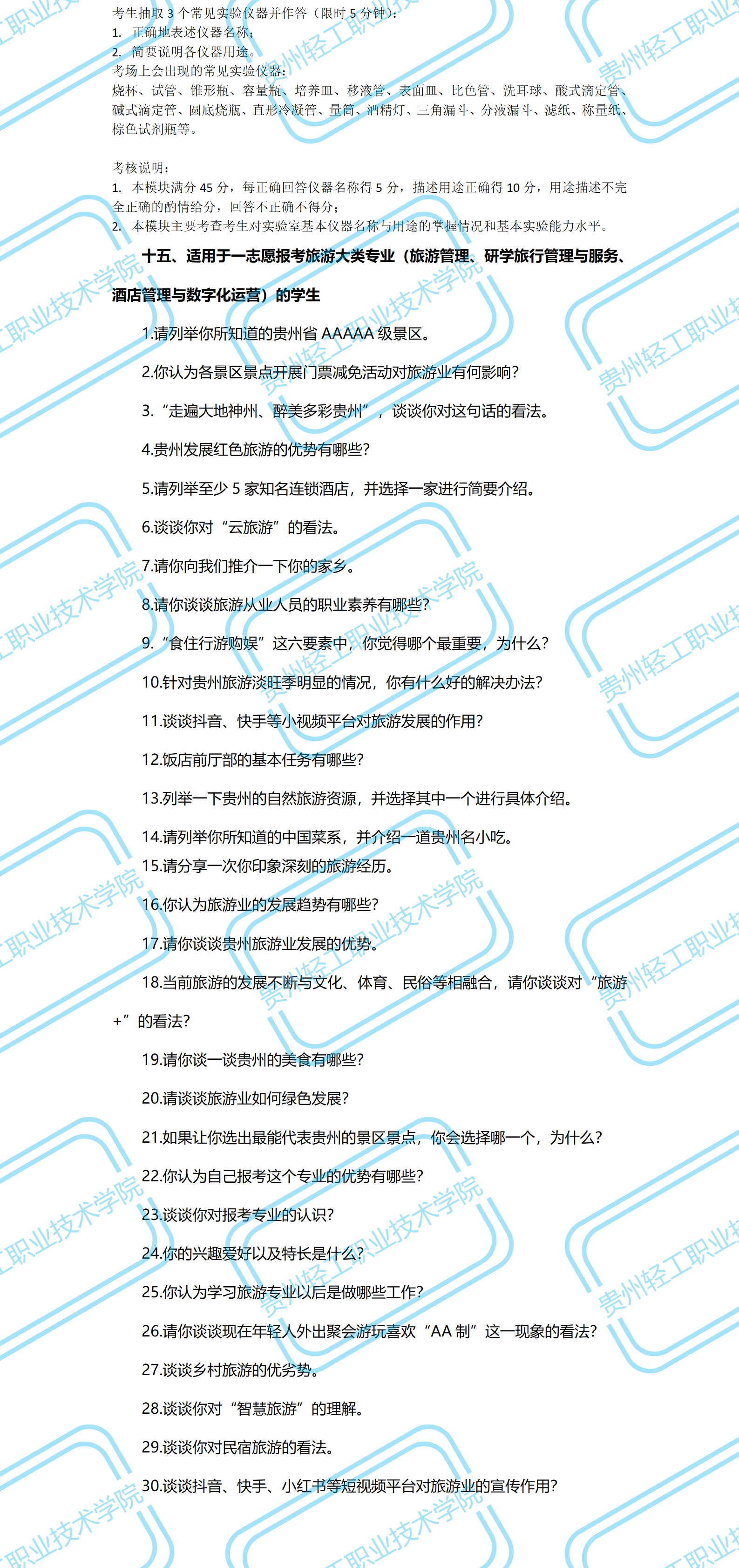 2024年贵阳职业技术学院分类招生考试大纲