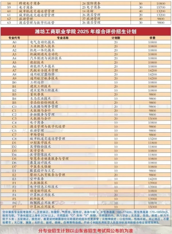 2025年潍坊工商职业学院高职单招、综合评价招生计划人数