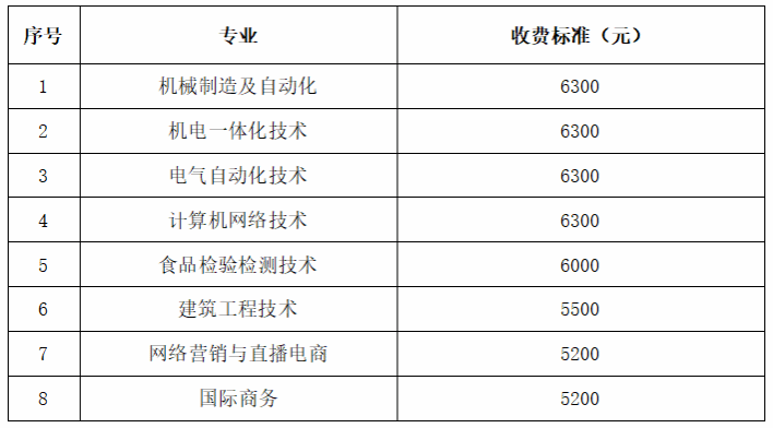 山东职业学院2025年高职(专科)单独招生和综合评价招生专业收费标准
