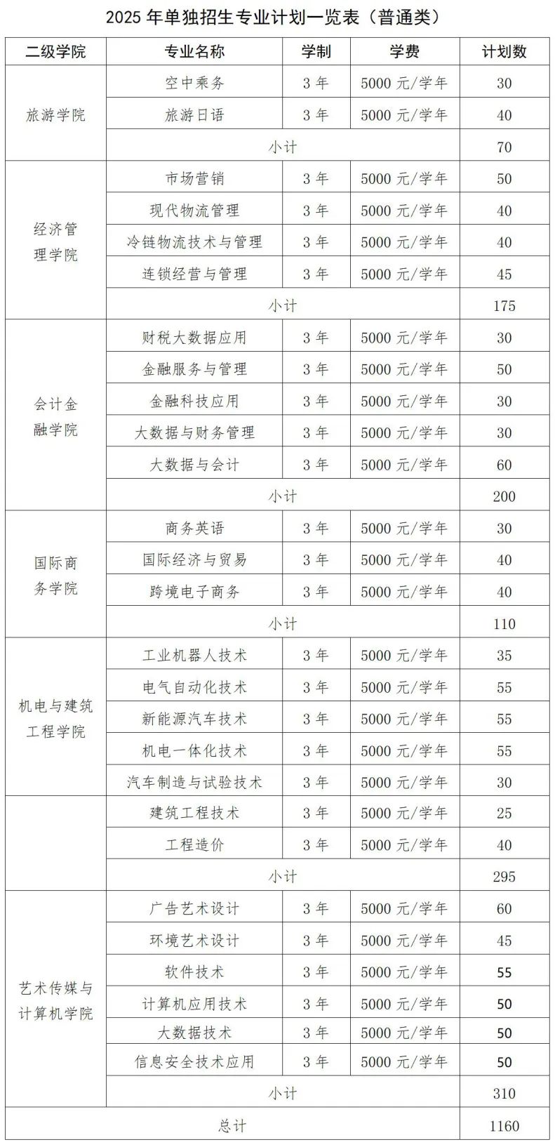 普通类招生计划为1160人。考试科目:文化素质全省统考+职业适应能力测试。