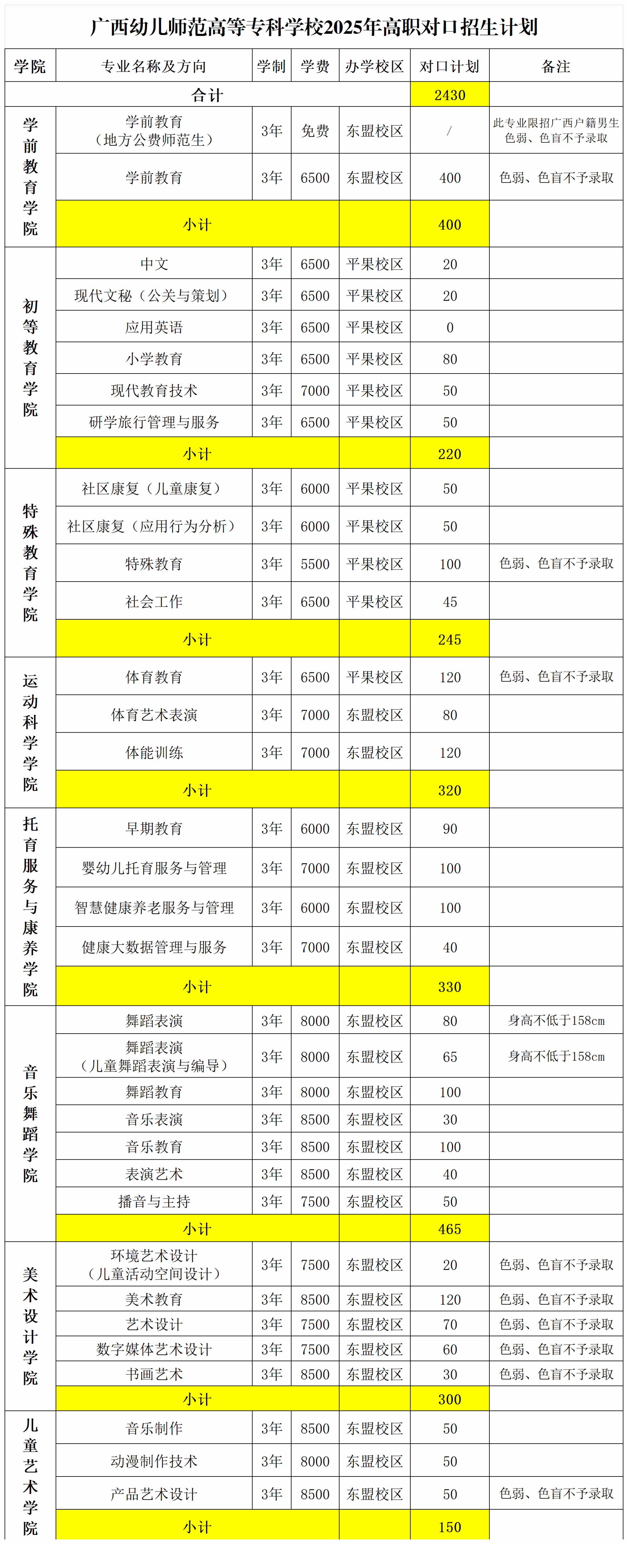 广西幼儿师范高等专科学校2025年高职单招计划