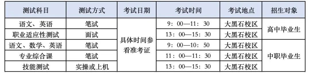 (1)考核分为“文化课+职业适应性测试”两部分。文化课考核方式为笔试,考试科目为语文、英语,各科满分均为150分;职业适应性测试考核方式为面试,满分150分;总分为450分。