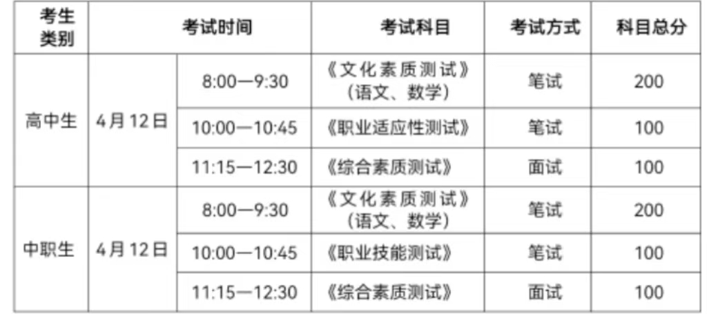 高中考生总成绩相同者,按语文、数学、职业适应性测试单科成绩排序录取。中职考生总成绩相同者,按专业技能测试、文化素质测试单科成绩排序录取。