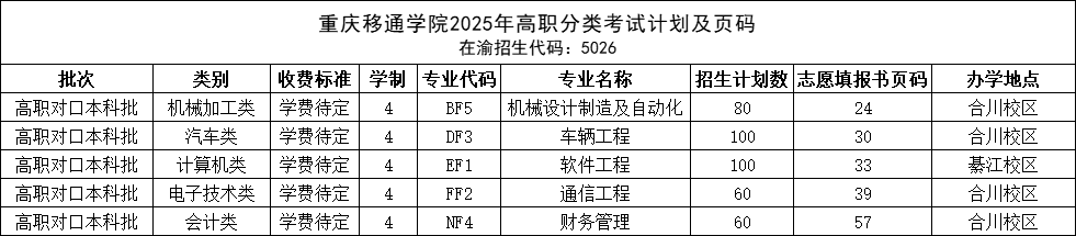 重庆移通学院2025年高职分类考试计划公布