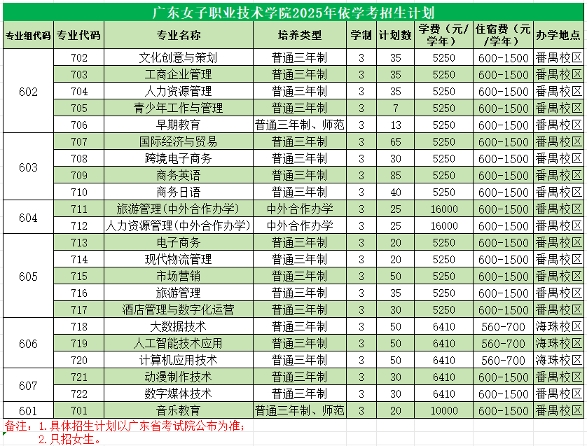 广东女子职业技术学院2025年春季高考3+证书招生计划