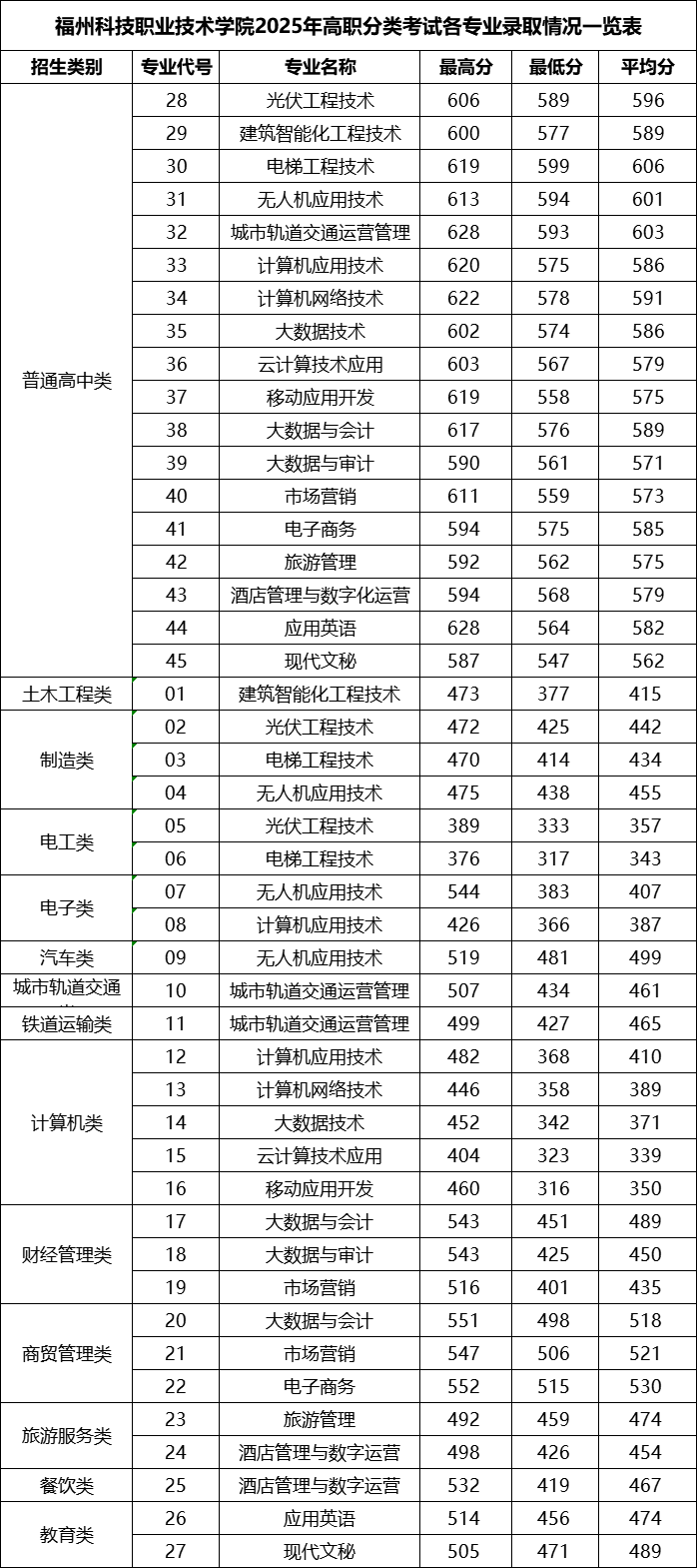 福州黎明职业技术学院2025年高职分类考试分数线 图片