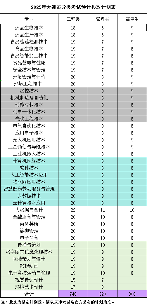 天津现代职业技术学院2025年分类考试预计投放计划表